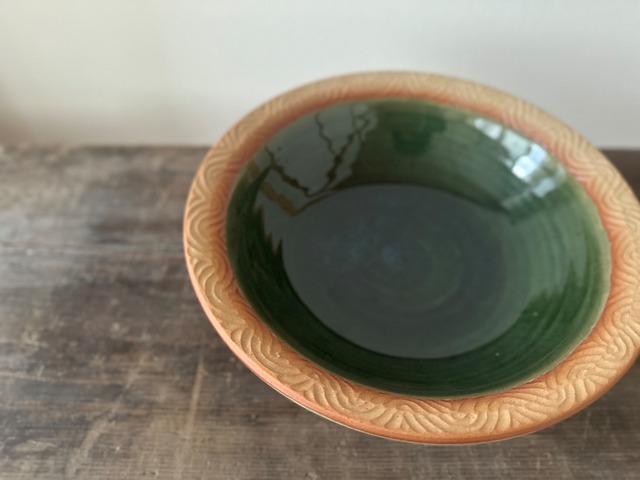 織部釉彫紋鉢