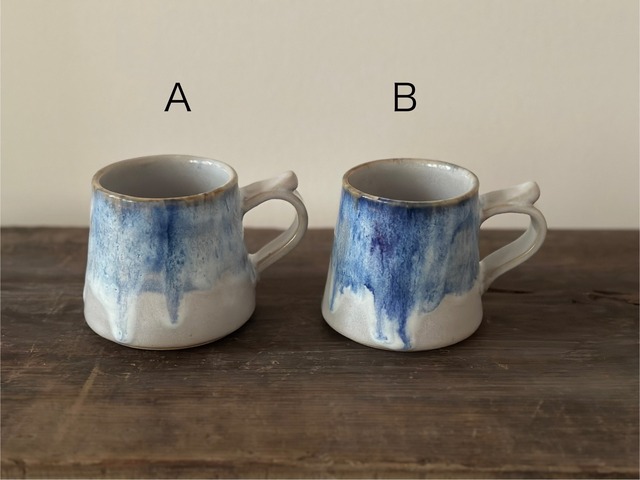 たっぷり入る円錐形のマグカップです。 流れるコバルトブルー A 口径7.2cm 高さ8.1cm B 口径7.0cm 高さ8.1cm 容量約300cc