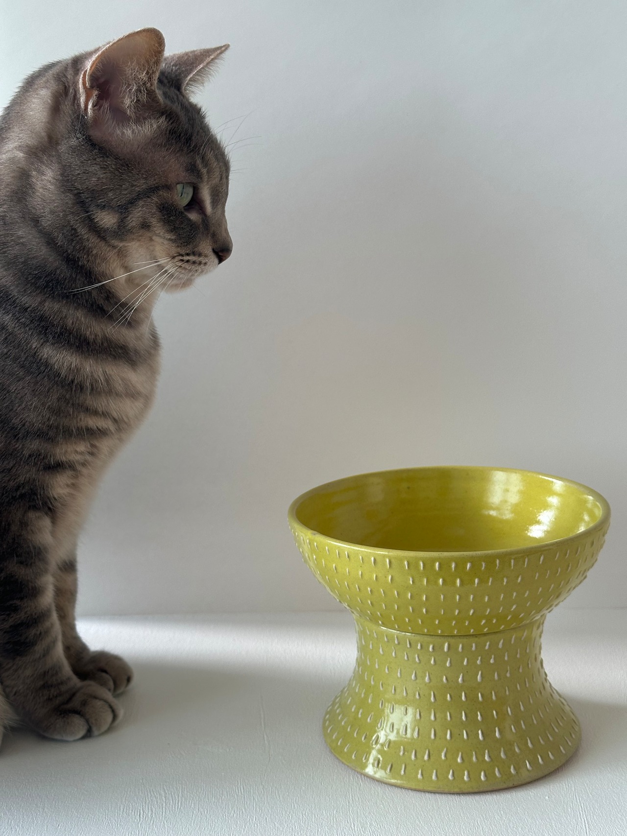高さのあるフードボウルは楽な姿勢で食事ができ、吐き戻しを防ぐ効果があります。