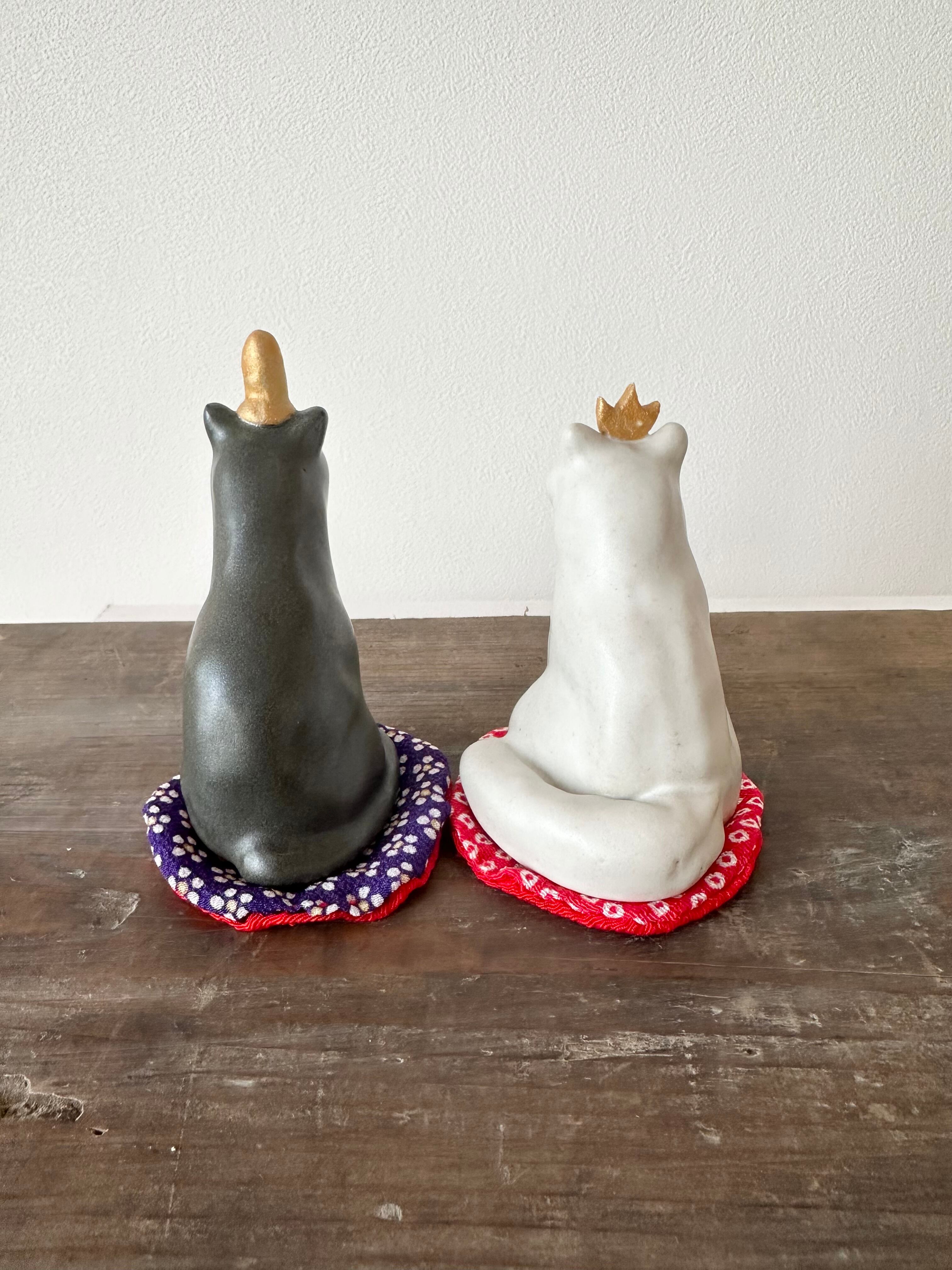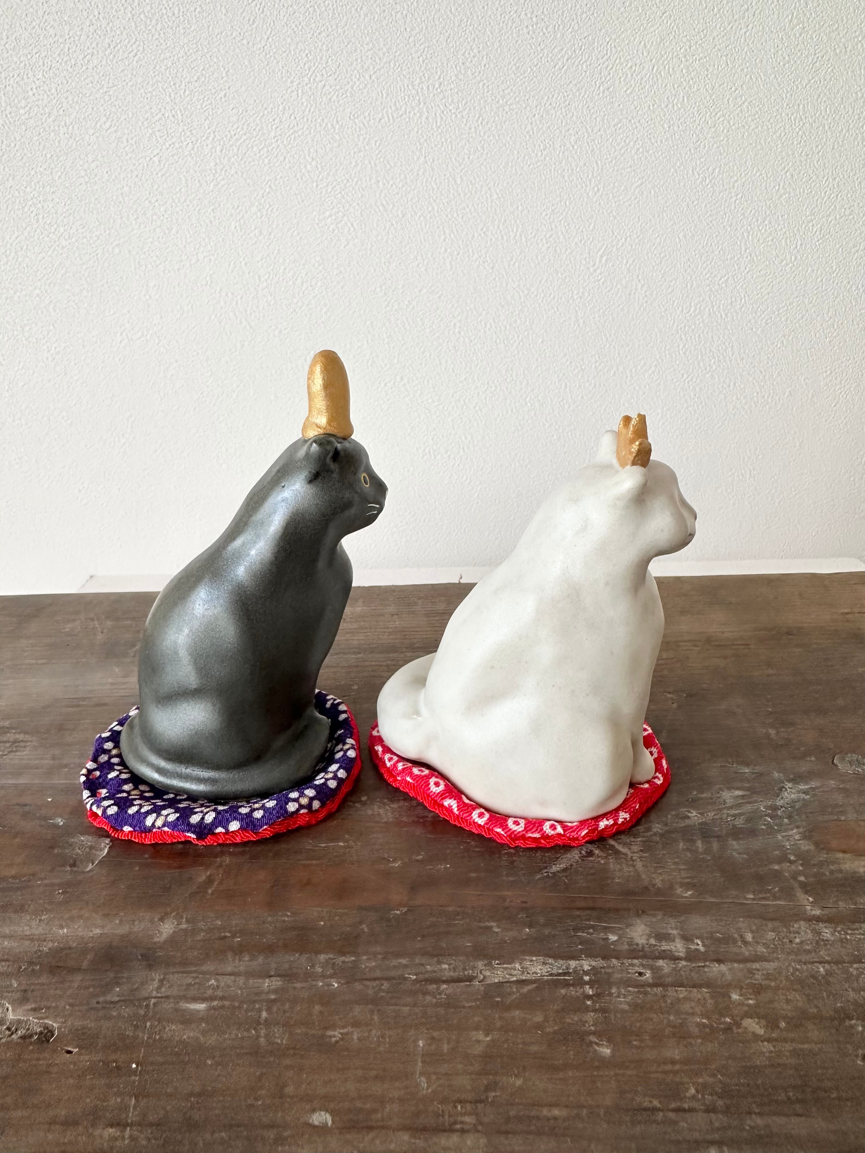 C猫の雛飾り(短毛&長毛・黒・白)